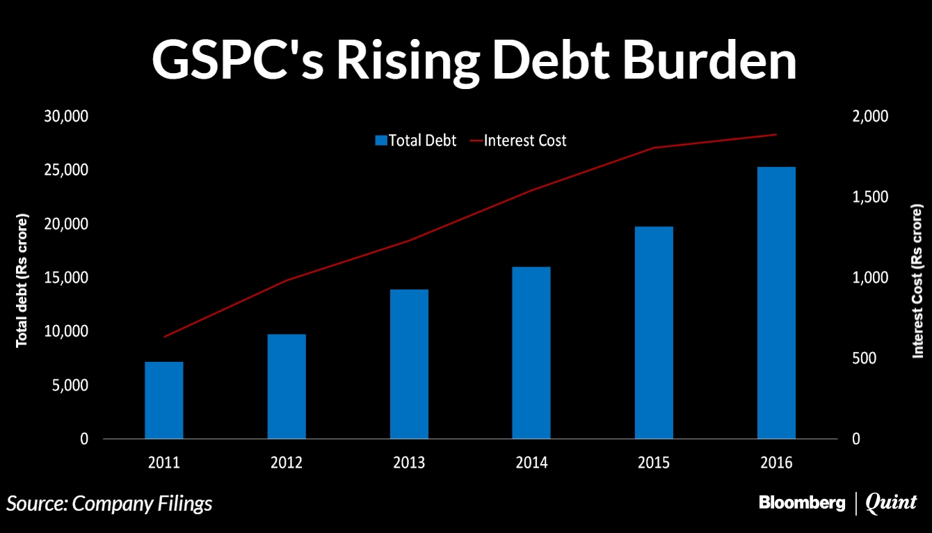 As of March 31, 2016, GSPC's consolidated debt stands at Rs 28,900 crore and the annual interest outflow at Rs 1,885 crore.