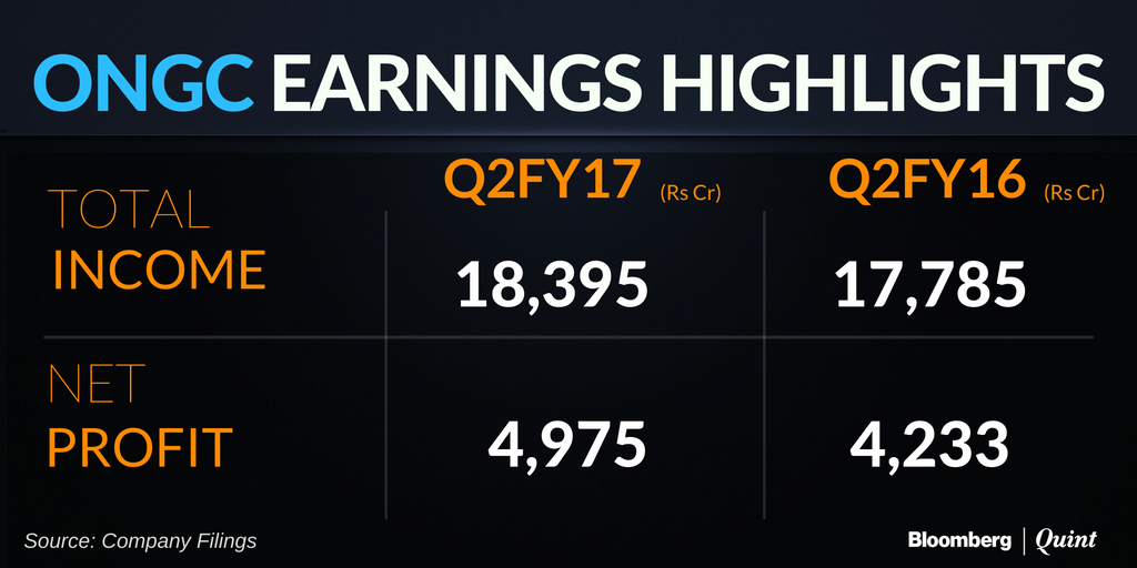 India's biggest energy explorer, ONGC's net profit came in at Rs 4,975 crore in the three months ended September 30, rising from Rs 4,233 crore a quarter earlier, the company said in a statement to exchanges. This figure is 15 percent higher than the Bloomberg consensus estimates. Total sales has risen marginally by 3.5 percent to Rs 18,287 crore. The stock rose as much as 2.52 percent touching 297.40 per share after the board approved an interim dividend and bonus share issue to shareholders.