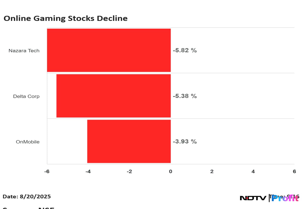 Shares Of Delta Corp Ltd., Nazara Technologies Ltd. and OnMobile Global came under selling pressure on Wednesday on the central government's proposal for a sweeping ban on all money-based online gaming transactions.