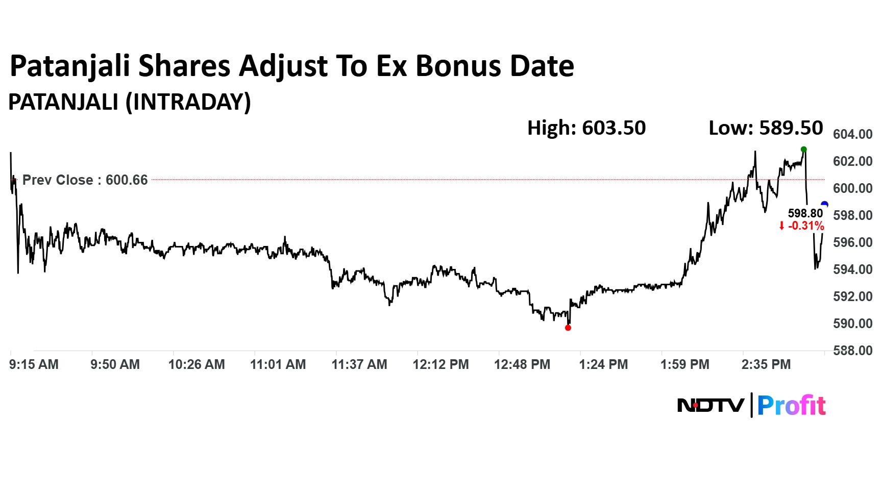Shares of Patanjali Foods Ltd. fell as much as 1.86% on Thursday while trading ex-bonus. The share price declined to a low of Rs 589.50 apiece on the NSE. The company is set to issue bonus shares in the ratio of 2:1.
