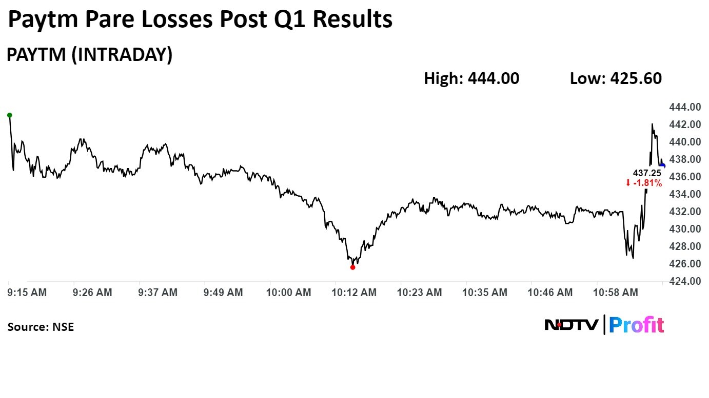 Paytm's net loss widened to Rs 840 crore in the quarter ended June 2024 from Rs 551 crore in the previous quarter, according to an exchange filing on Friday. Analysts polled by Bloomberg estimated a net loss of Rs 933.26 crore.