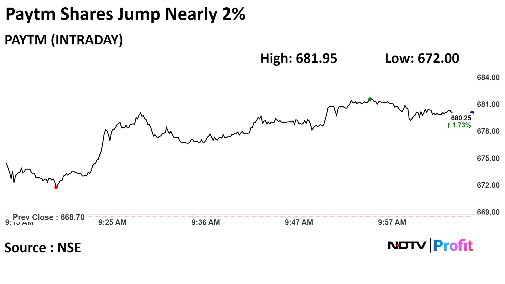 On the NSE, Paytm's stock rose 1.98% during the day to Rs 681.95 apiece, the highest since Dec. 7. It was trading 1.9% higher at Rs 681.40 apiece, compared to a 0.32% advance in the benchmark Nifty 50 at 10:30 a.m.
