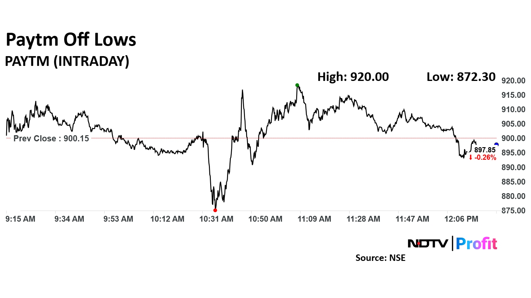 Paytm share price rose as much as 2.2% after logging an intraday fall of as much as 3.1%. It erased gains to trade 0.3% lower at Rs 896.75 apiece, as of 12:31 p.m.. This compares to a 0.6% advance in the NSE Nifty 50 Index.