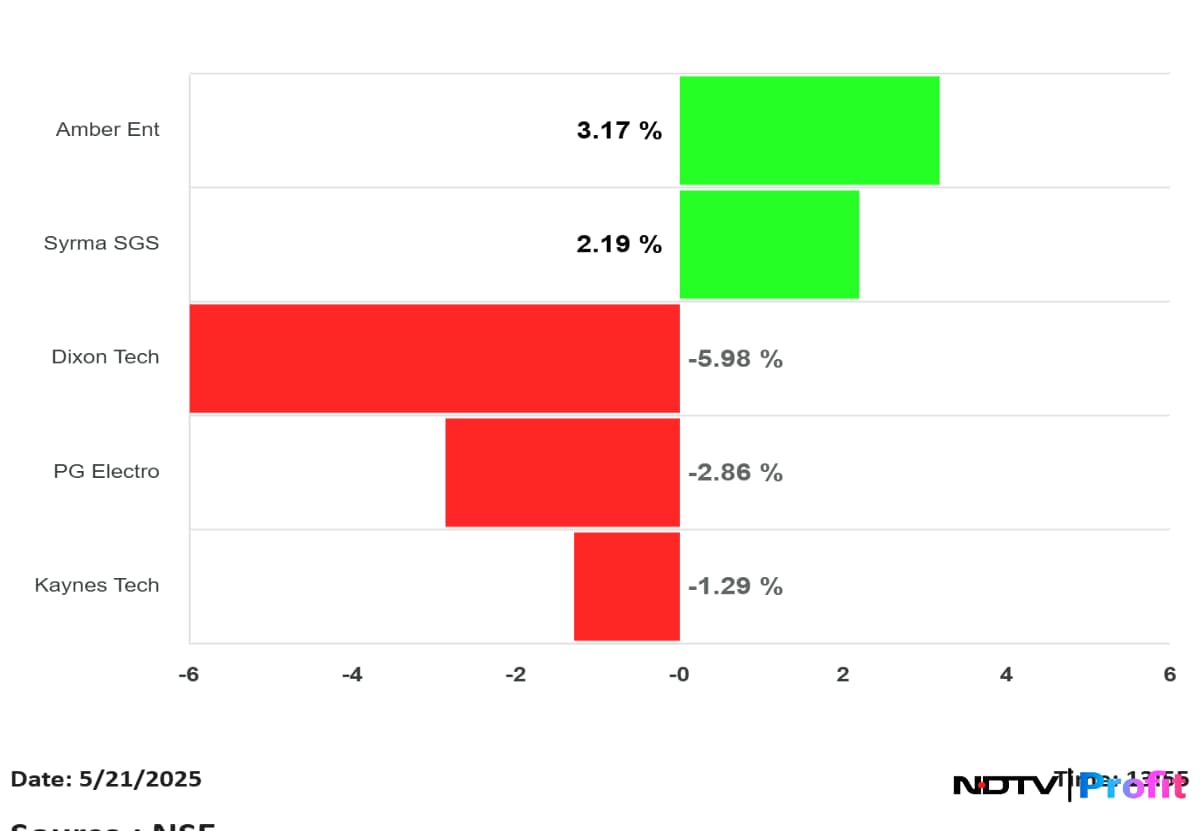 However, Dixon Technologies Ltd. and PG Electroplast shares fell in Wednesday's session. The stocks declined as much as 7.82% and 3.18% down, respectively.