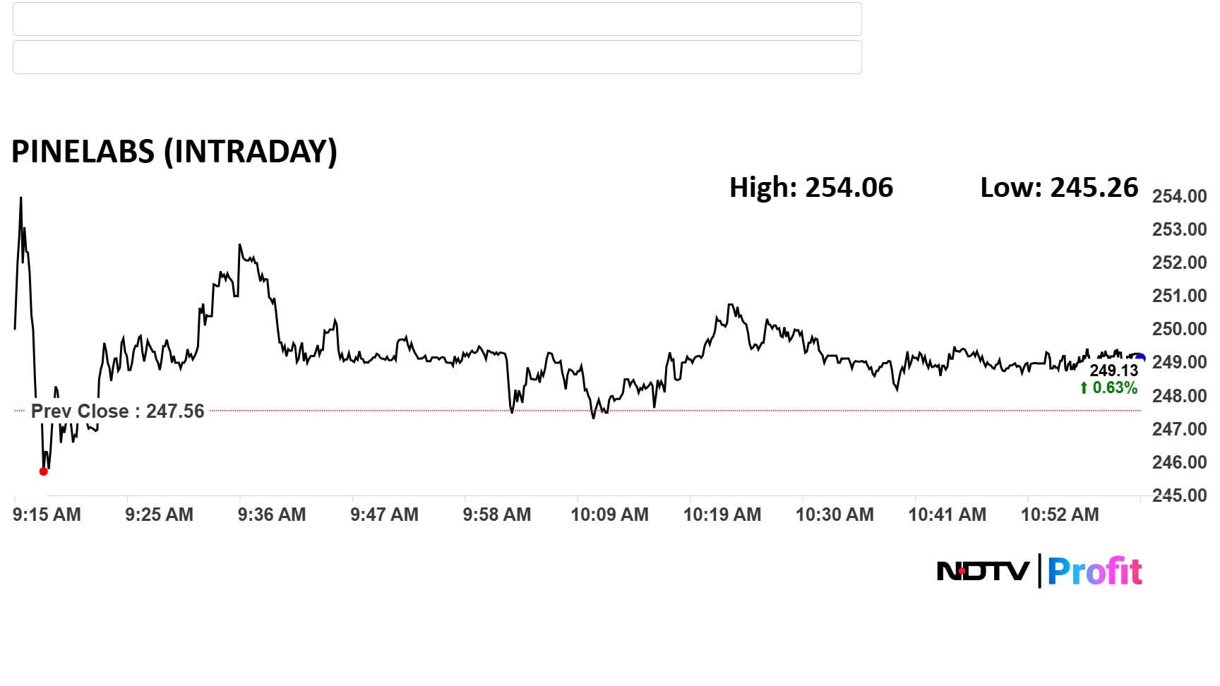 The stock opened at Rs 249, up from the previous close of Rs 247 on Dec. 3, and traded as high as Rs 250.75 at 10:23 a.m. The uptick comes after Pine Labs reported a net profit of Rs 5.97 crore for Q2, as compared to Rs 32.01 crore loss from the previous fiscal year. The revenue is reported to have surged18% year-on-year.