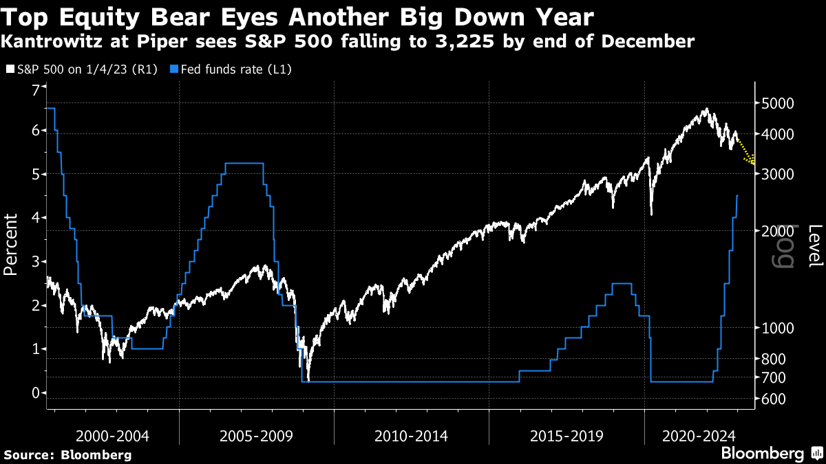 “There is more pain ahead for equities as the knock-on effects of 2022's bond bear market and global policy tightening begin to show up in corporate earnings and cyclical market risks,” Kantrowitz said in an interview. “In many ways we are in an uncommon backdrop.”