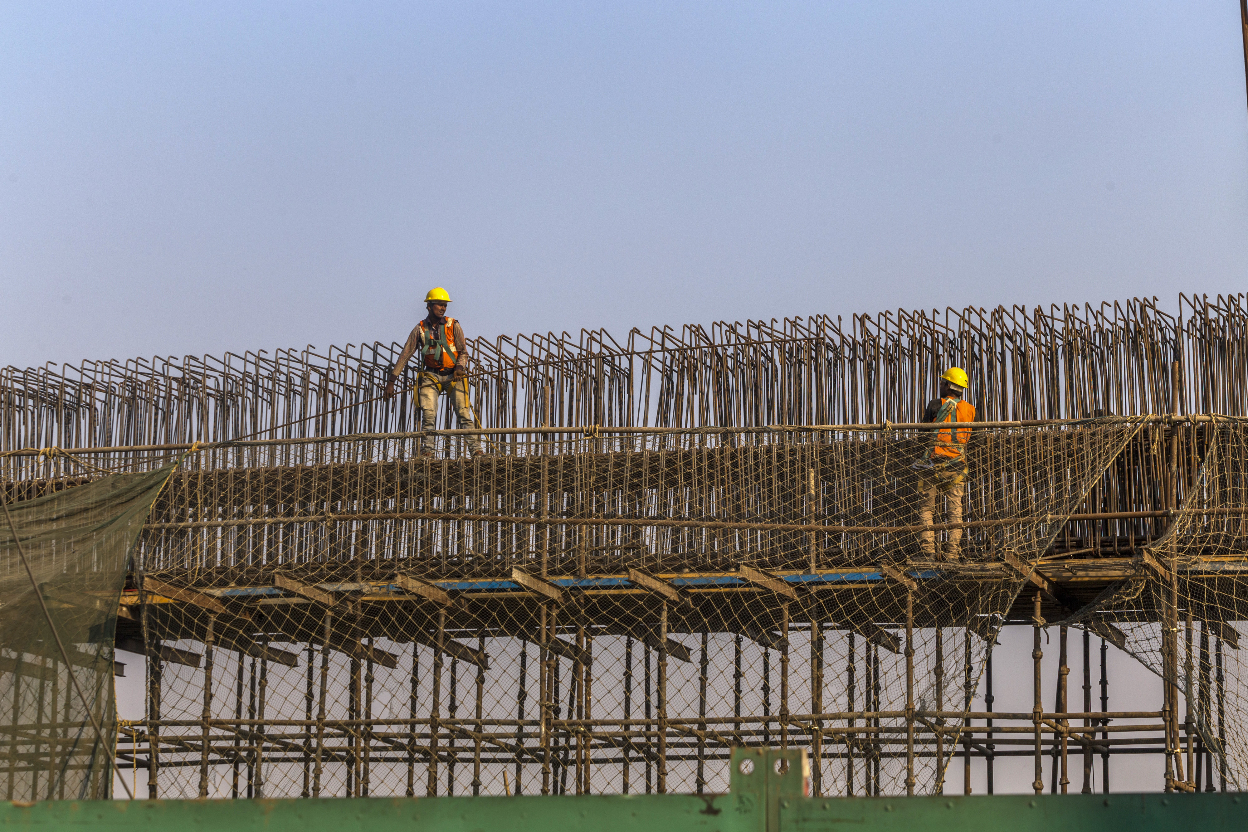 Scaffolding stands at a construction site in Lucknow. (Photographer: Prashanth Vishwanathan/Bloomberg)