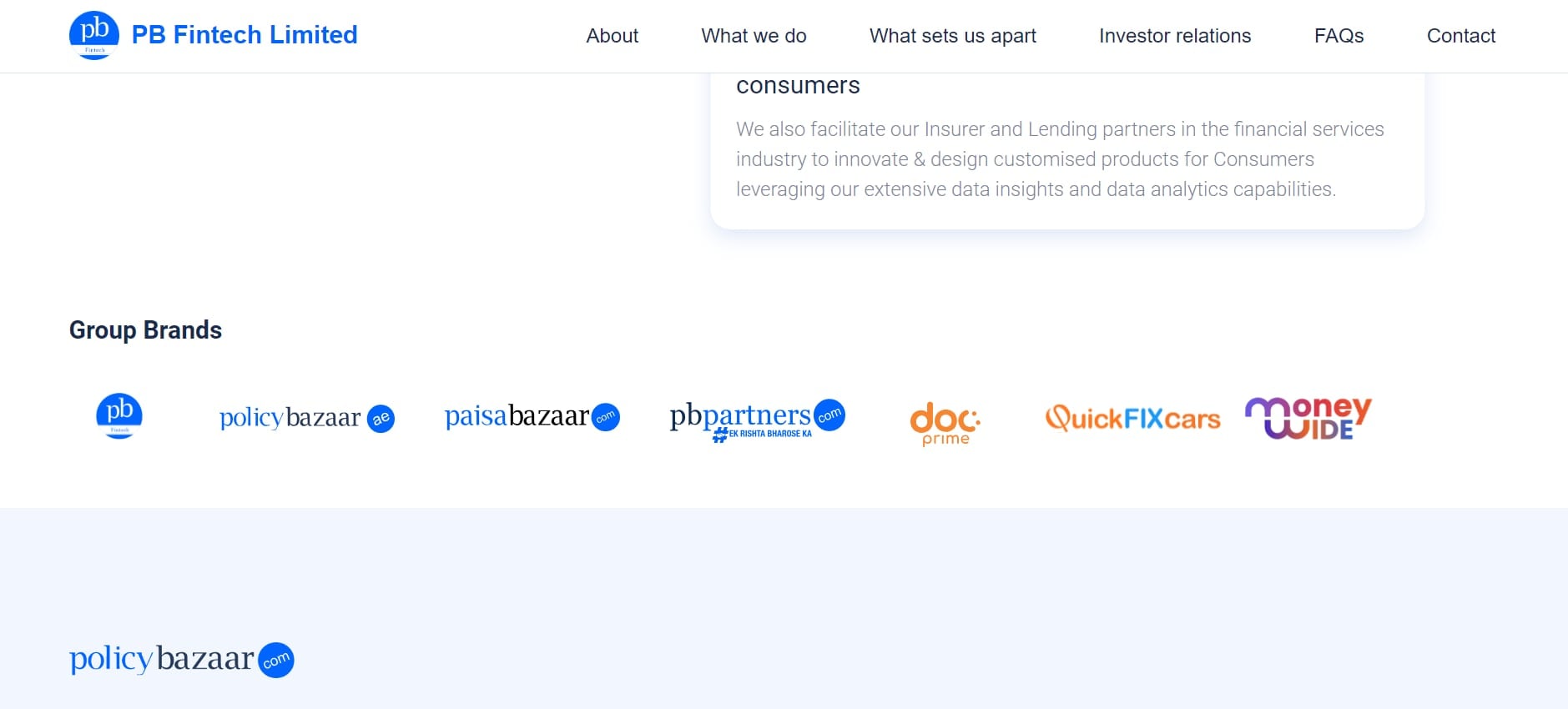 PB Fintech was co-founded by Yashish Dahiya and Alok Bansal in 2008. The company operates online insurance aggregator Policybazaar and credit comparison portal Paisabazaar. The company made its stock market debut in November 2021.