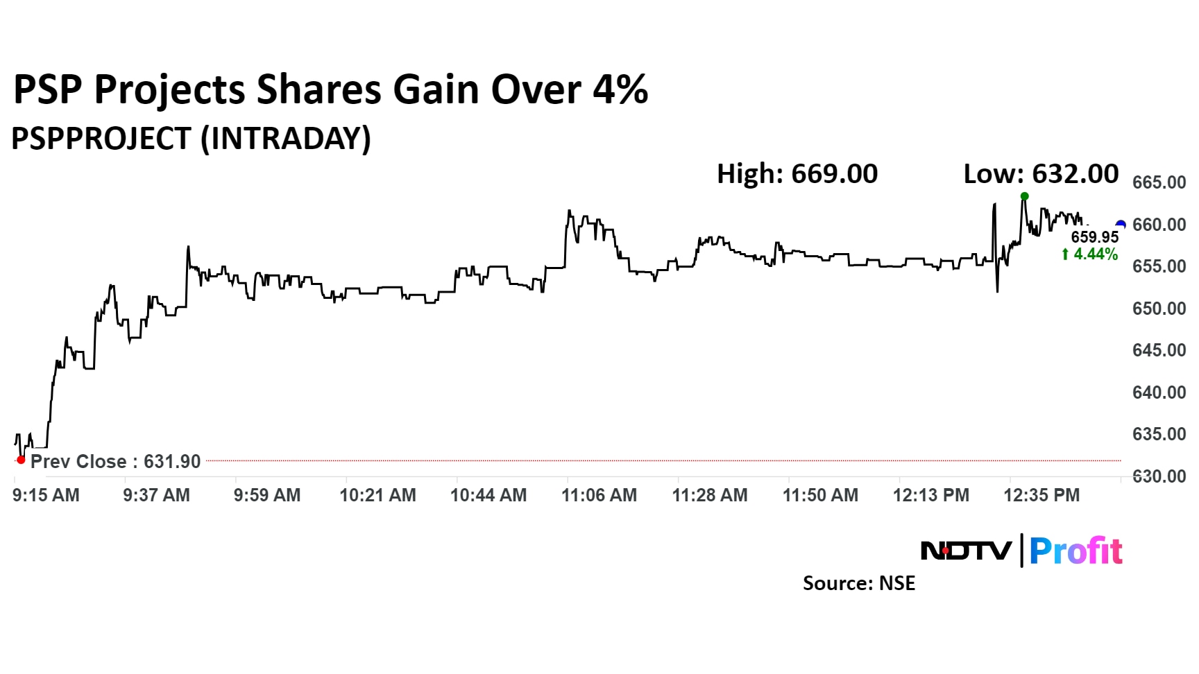 Shares of PSP Projects were trading 4.45% higher to Rs 660 apiece, compared to 0.72% advance at the benchmark NSE Nifty 50 at 1:11 p.m.