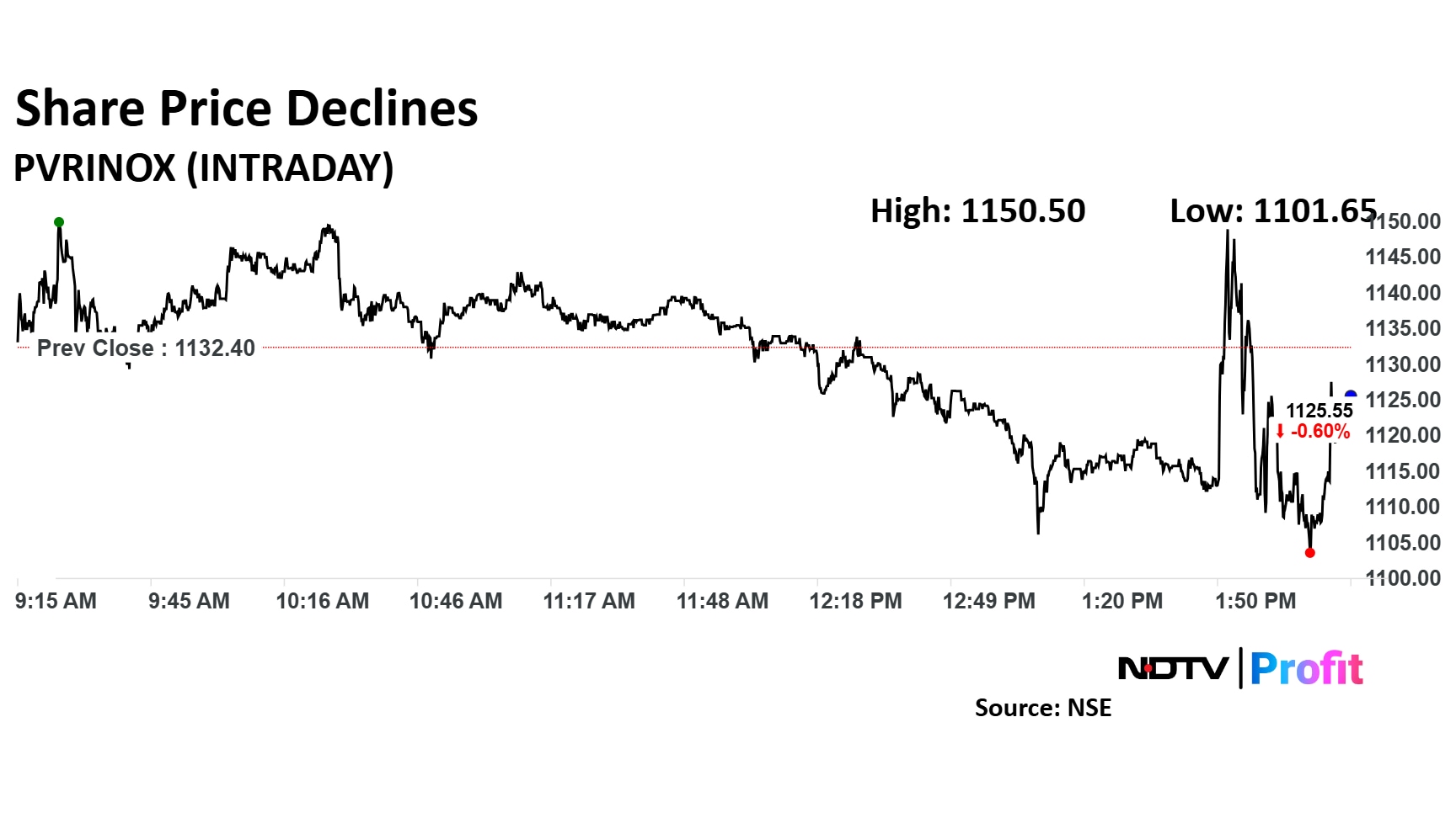 Shares of PVR Inox fell as much as 2.72% to Rs 1,101 apiece. (Photo source: NDTV Profit)