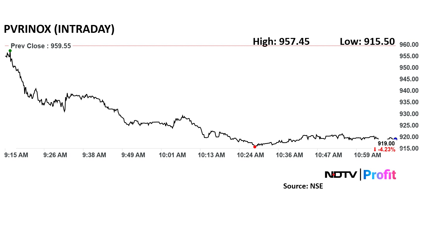 PVR Inox share price declined 4.6% to Rs 915.5 apiece by 11:10 a.m. The benchmark NSE Nifty 50 was down 1%.