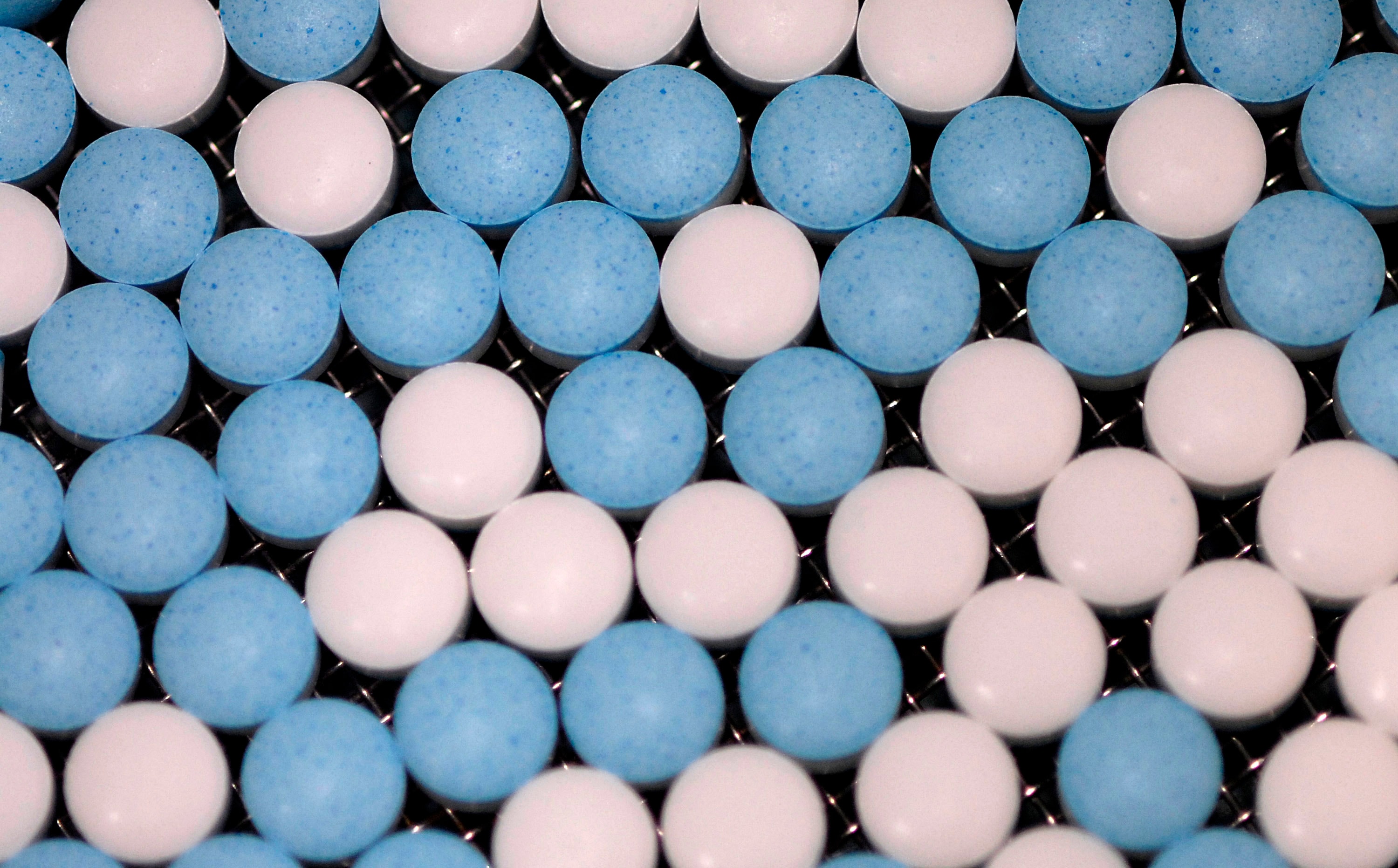 Metformin Bilayer, medicinal tablets manufactured by Sun Pharmaceuticals Industries Ltd., are photographed at company’s lab in Mumbai. (Photographer: Abhijit Bhatlekar/Bloomberg News)