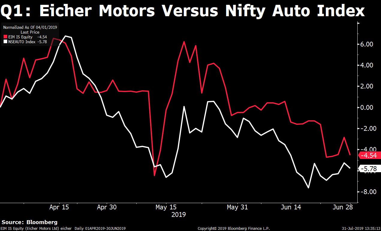Net profit declined 21.6 percent year-on-year to Rs 451.8 crore in the April-June period, the maker of Royal Enfield motorcycles said in an exchange filing. That missed the Rs 490-crore consensus estimate of analysts tracked by Bloomberg.
