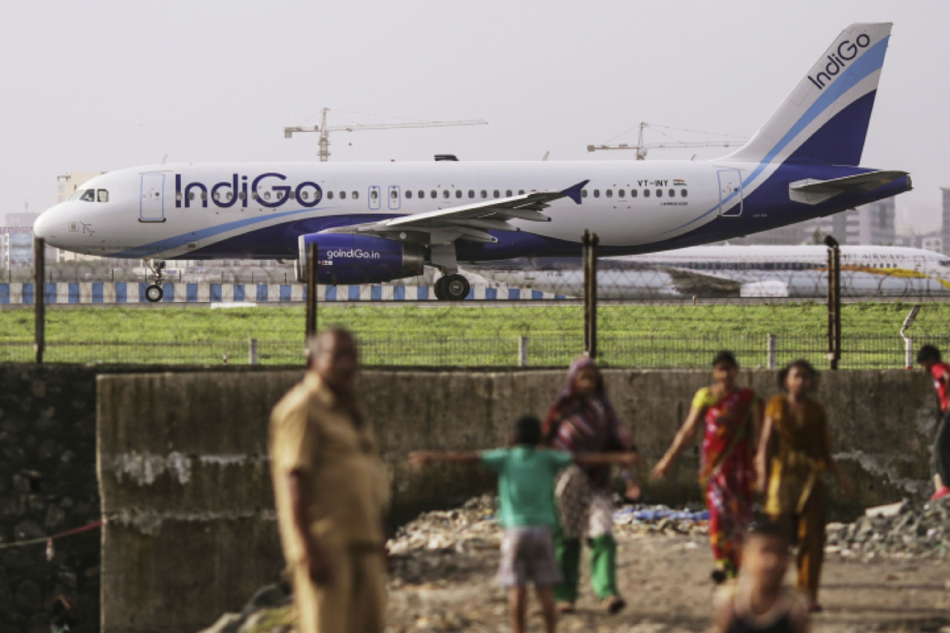 An Airbus SAS A320 aircraft operated by IndiGo taxies at Chhatrapati Shivaji International Airport in Mumbai, India (Photographer: Dhiraj Singh/Bloomberg)