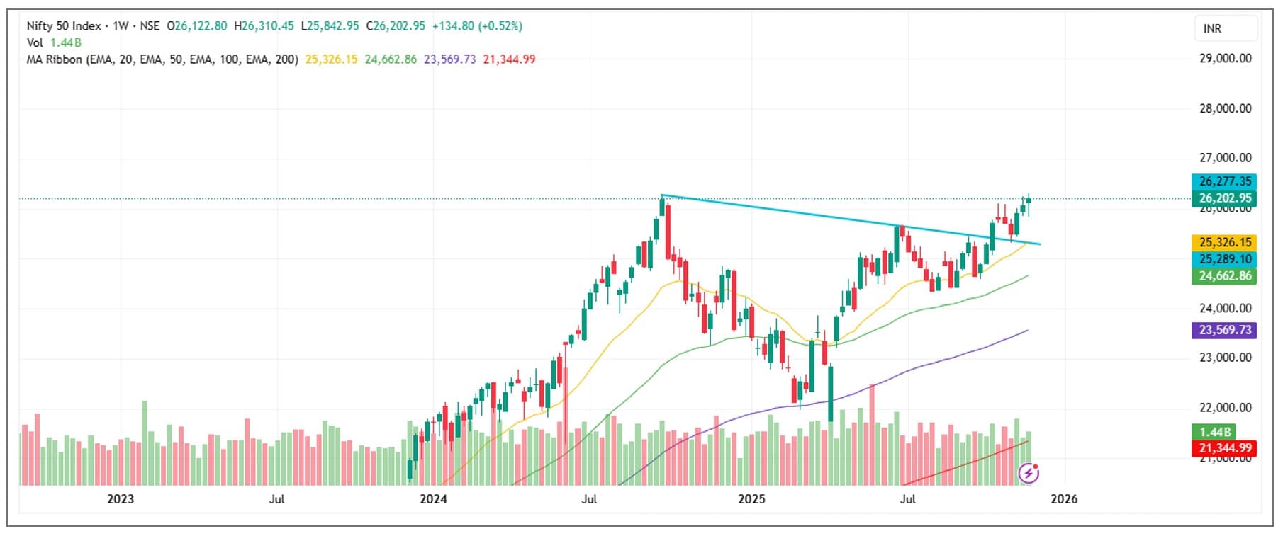 Going forward, Nifty is likely to extend its move and head toward 26,500, with 26,800 as the next target. "On the downside, the 20-day EMA zone of 25,950–25,900 should offer strong near-term support," said Sudeep Shah.