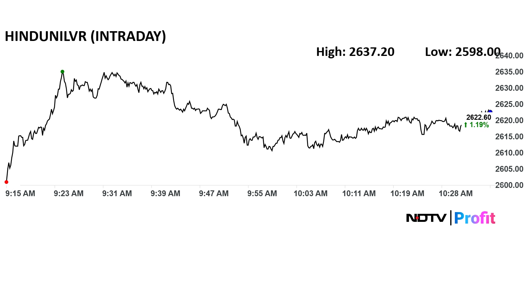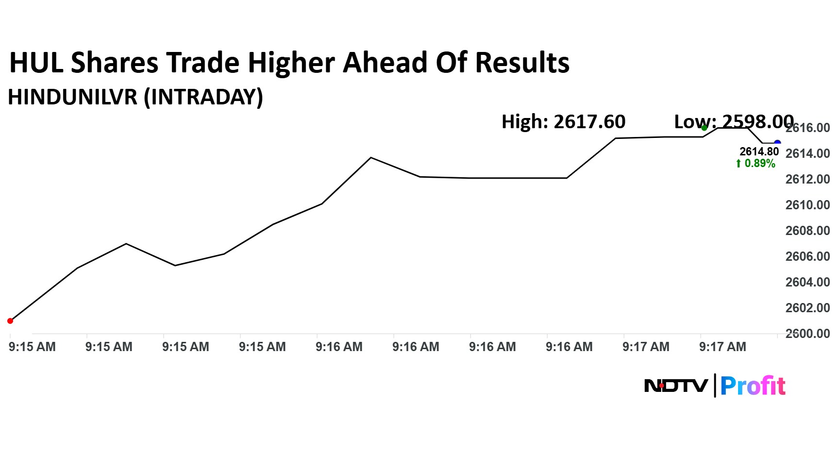 The shares of HUL opened higher ahead of the company's posting of second quarter results. The scrip is trading 0.89% higher at Rs 2,614 apiece on the NSE as of 9:22 a.m.
