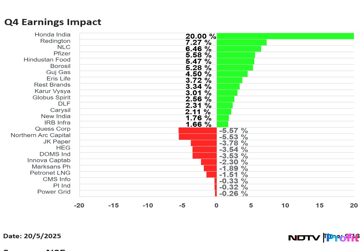 Honda India Ltd. shares rose the most, while Quess Corp. Ltd. fell the most, among the companies that announced their results for quarter ended March.