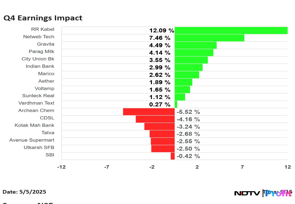 RR Kabel Ltd. shares rose the most, while Archean Chemical Ltd. fell the most, among the companies that announced their results for the quarter ending in March.