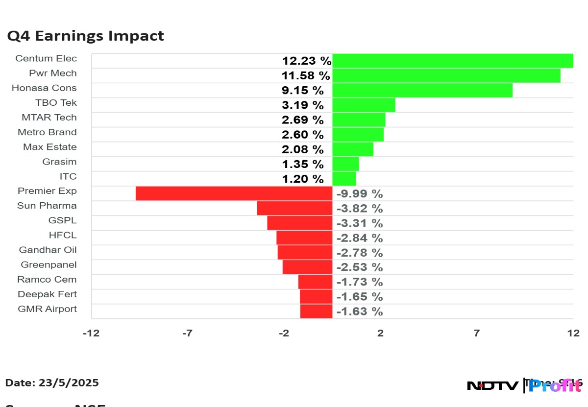 Centum Electronics Ltd. shares rose the most, while Premier Explosives Ltd. fell the most, among the companies that announced their results for the quarter ended March.