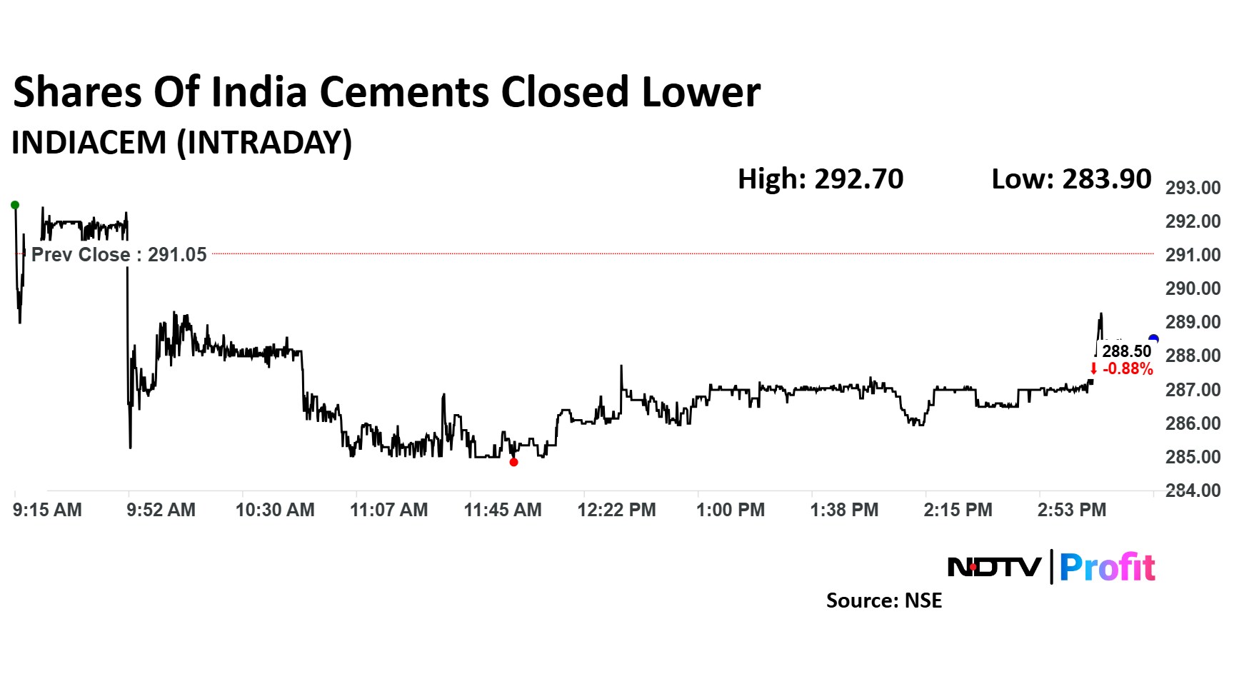 The shares of India Cement closed 1.12% lower at Rs 287.8 on Friday ahead of posting results. The decline compares to a 0.86% decline in the benchmark index Nifty 50.