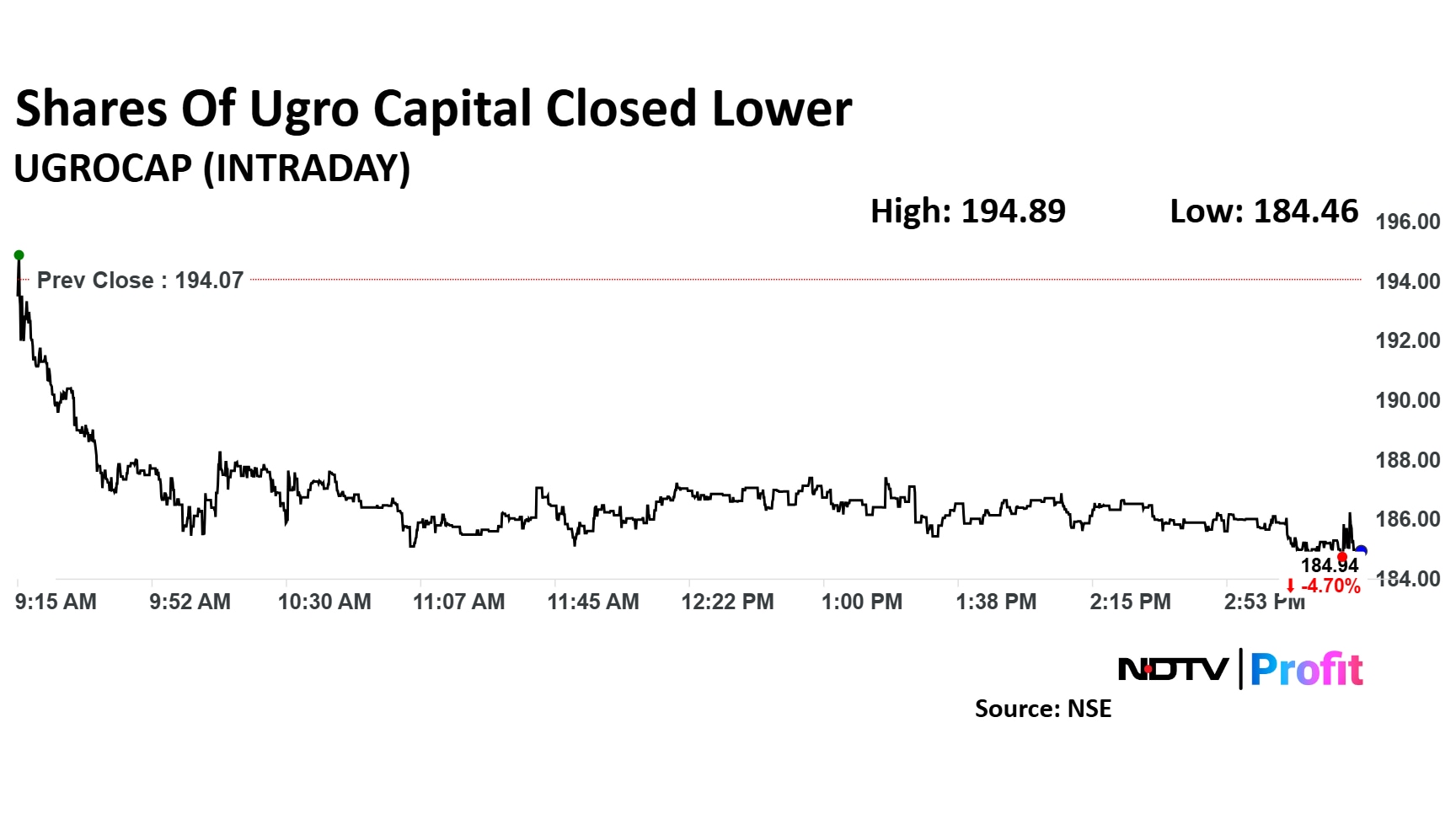 The shares of Ugro Capital closed 4.54% lower at Rs 185.26 on Friday ahead of posting results. The decline compares to a 0.86% decline in the benchmark index Nifty 50.