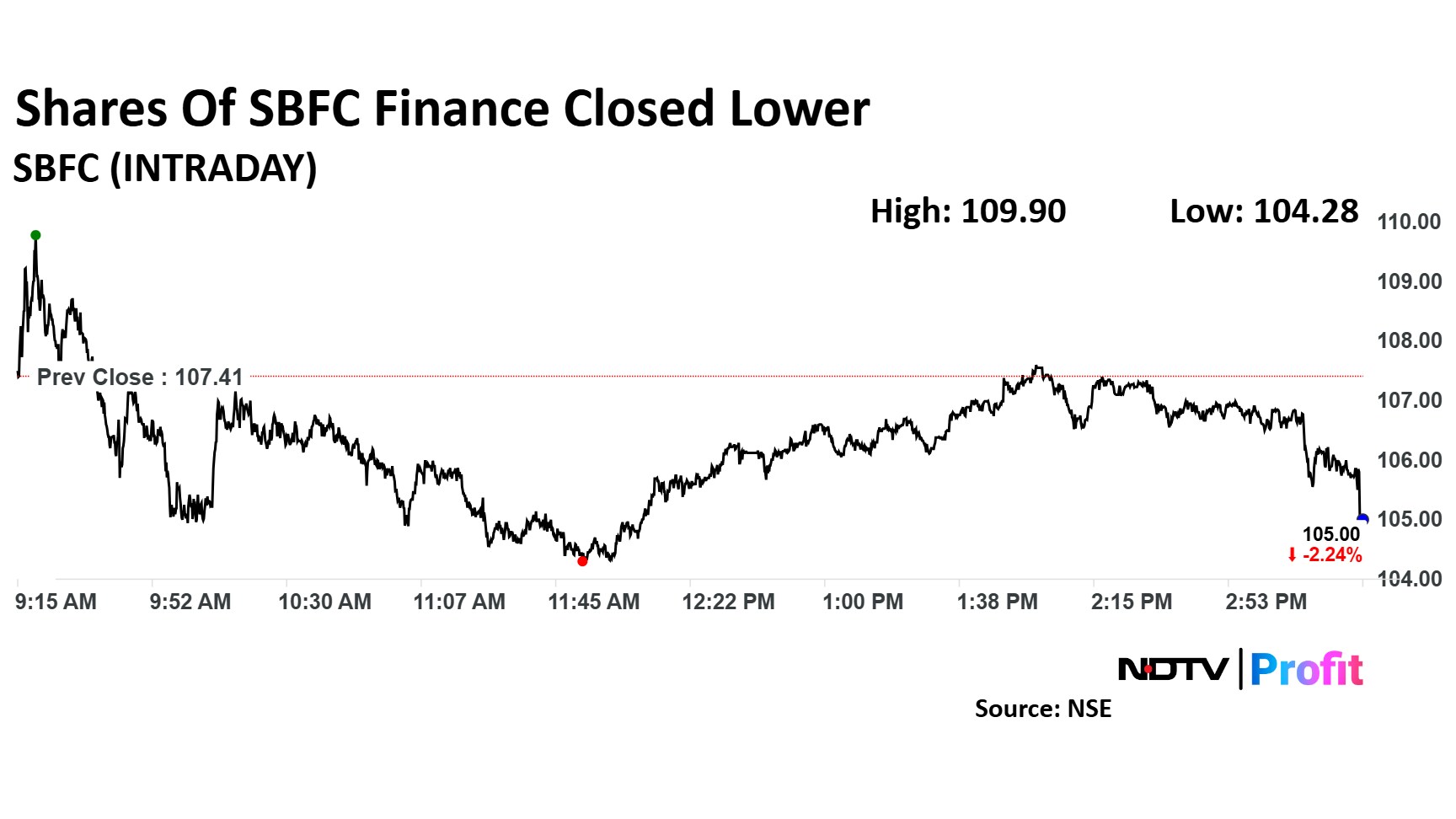 The shares of SBFC Finance closed 1.26% lower at Rs 106.15 on Friday ahead of posting results. The decline compares to a 0.86% decline in the benchmark index Nifty 50.