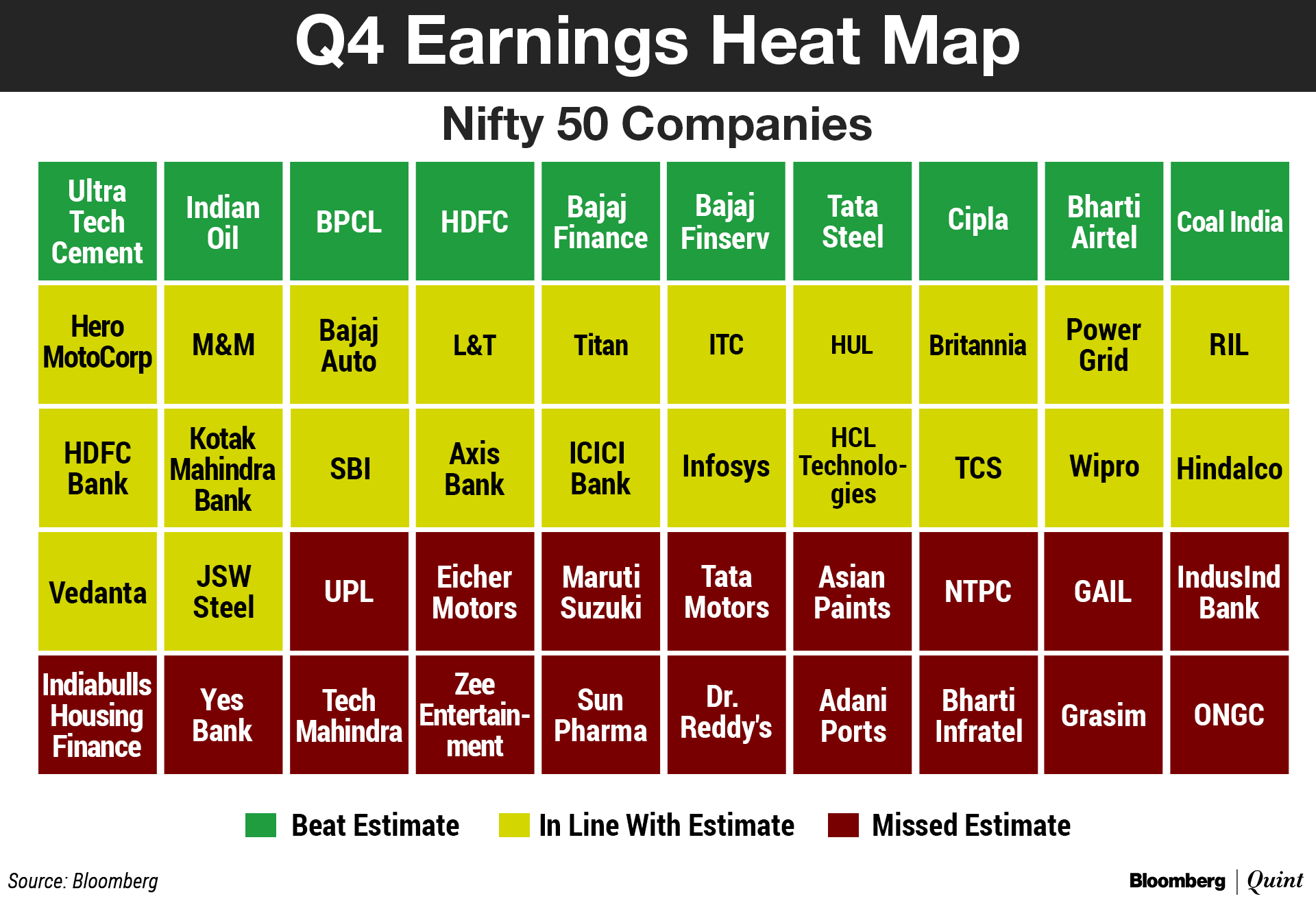 Earnings of 32 of the 50 companies were either in line or above forecasts in the three months ended March, the fewest since the first quarter of 2017-18, according to Bloomberg data. 18 companies failed to meet expectations, the highest in at least two years.