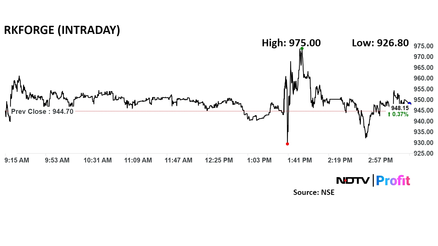 Shares of Ramkrishna Forgings settled 0.56% higher at Rs 950 apiece on the NSE at the closing bell. In comparison, the benchmark Nifty 50 settled 0.15% lower.