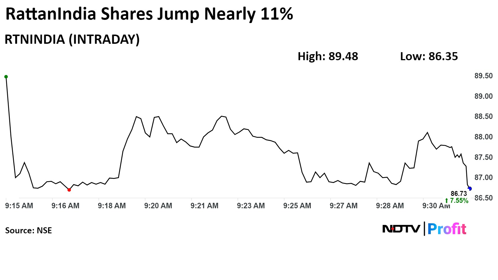 Shares of RattanIndia Enterprises Ltd., formerly known as Indiabulls Infrastructure & Power Ltd., surged nearly 11% on Tuesday after its first-quarter profit jumped nearly fivefold.