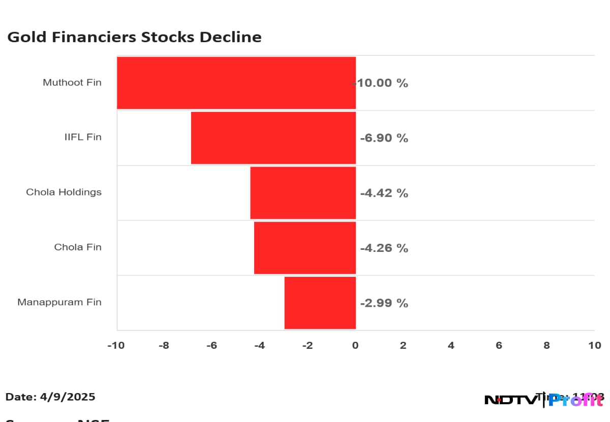Shares of Cholamandalam Financial Holdings Ltd., IIFL Finance Ltd., Muthoot Finance Ltd., Cholamandalam Investment and Finance Co. and Manappuram Finance Ltd. declined after the Reserve Bank of India announced it will issue comprehensive regulations on prudential norms for gold loans.