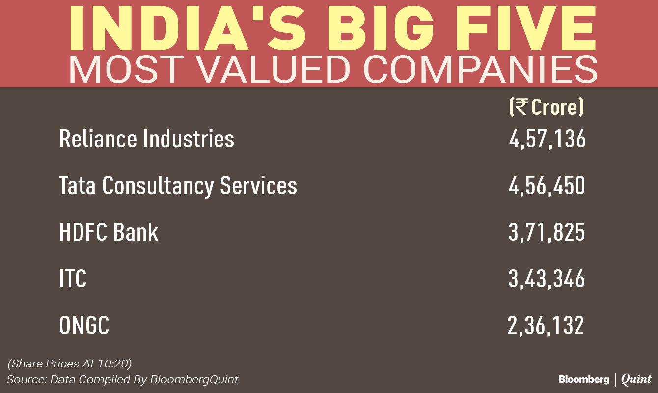 The Mukesh Ambani-owned company reached a valuation of Rs 4,57,136 crore at 10:20 a.m., ahead of Tata Consultancy Services Ltd., which led the market capitalisation rankings for nearly four years.