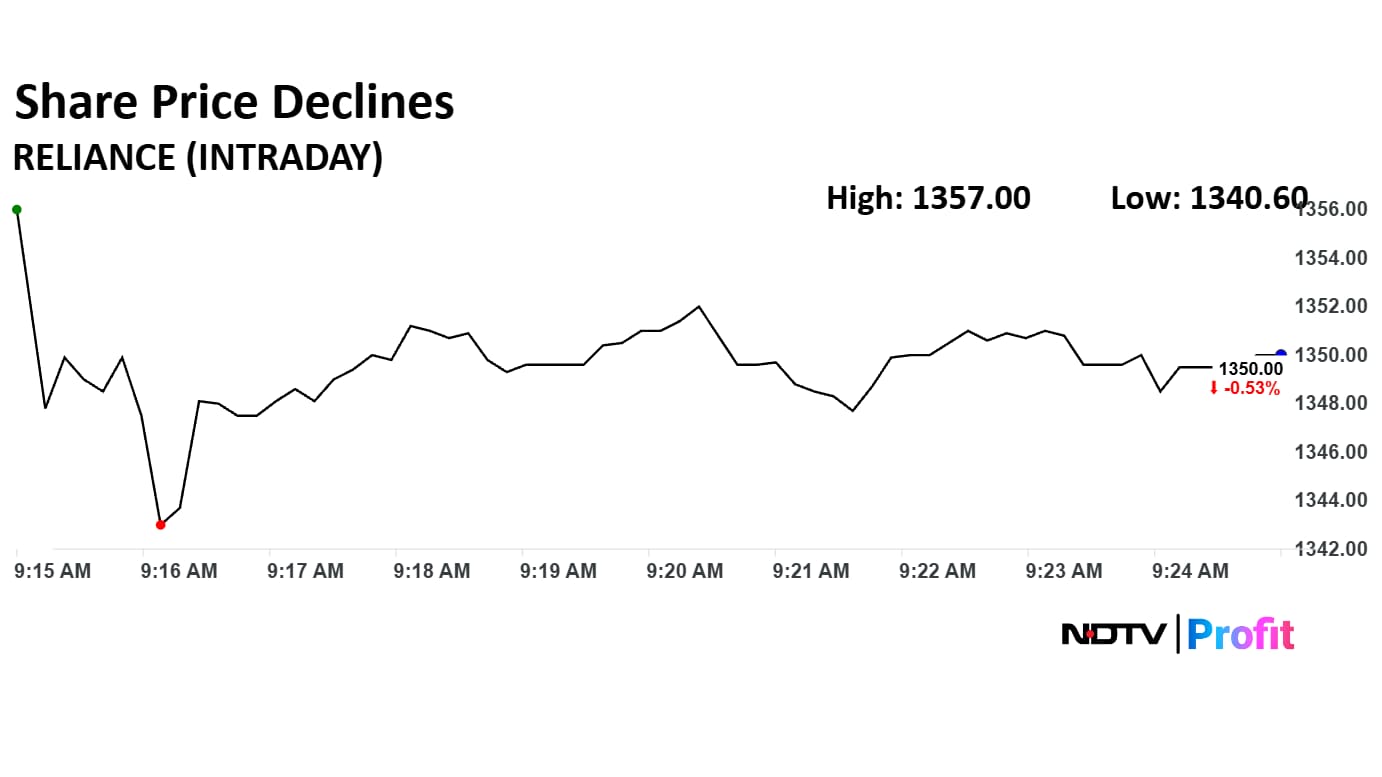 - Reliance Industries shares fell 1.22% in intraday trading on Monday morning