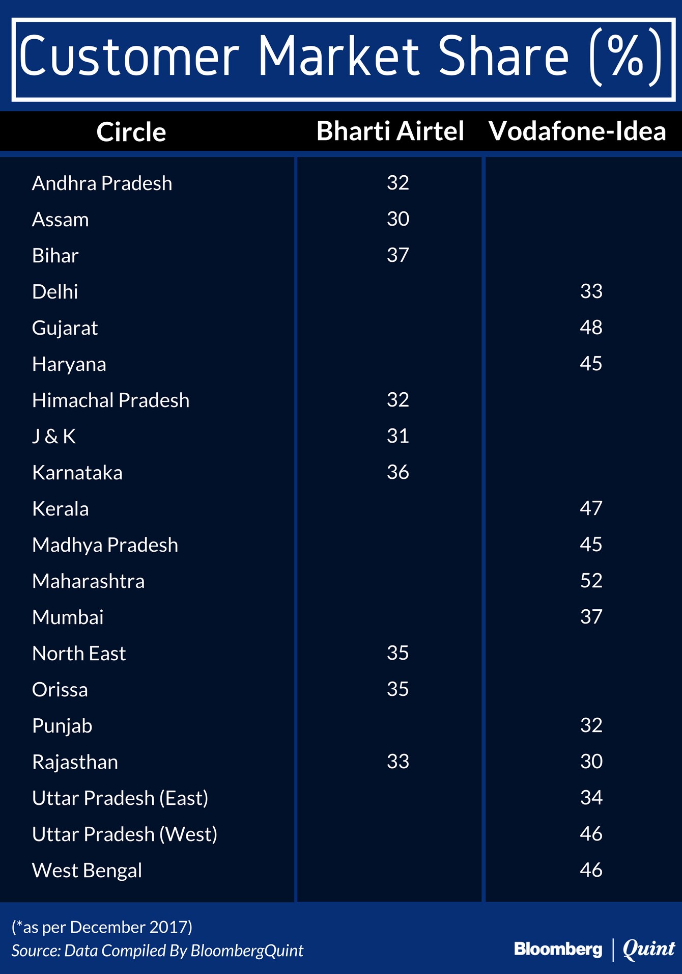 Restrictions remain on Bharti Airtel Ltd., India's largest telecom operator, and the combine of Idea Cellular Ltd. and Vodafone India Ltd. Bharti Airtel has more than 30 percent customer market share in nine circles, while Vodafone-Idea breach the 30 percent mark in more than 10 circles.