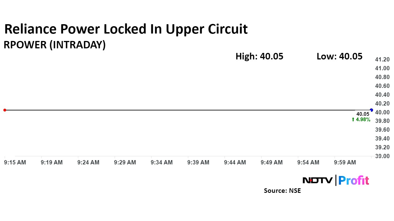 Reliance Power Ltd. hit 4.98% upper circuit and rose to Rs. 40.05 apiece, the highest level since April 19, 2018. It remained locked in the upper circuit as of 10:07 a.m., compared to 0.10% advance in the NSE Nifty 50 index.