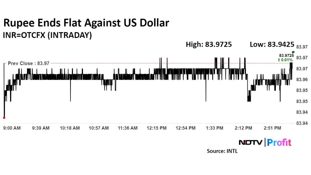 The Indian currency closed flat at Rs 83.97 against the US dollar. It had closed at Rs 83.97 on Thursday, according to Bloomberg data.