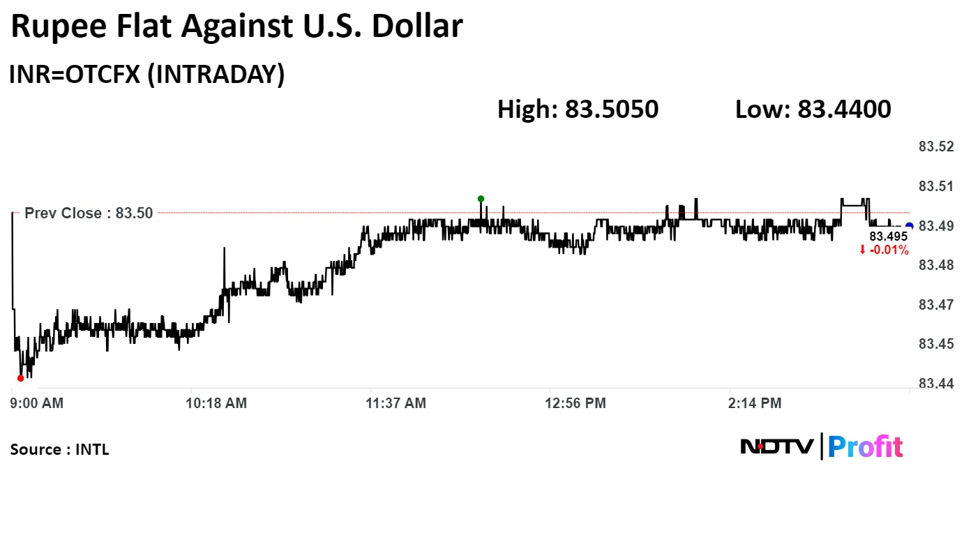 The Indian unit settled at Rs 83.50 against the US dollar, unchanged from Wednesday's closing. It opened at Rs 83.46, appreciating 4 paise against the greenback, according to Bloomberg data.