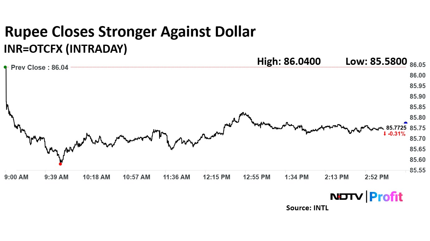 The local unit closed at 85.77 against the US dollar. It had slipped below the psychological level of 86 after three consecutive sessions. The rupee had opened at 85.85.