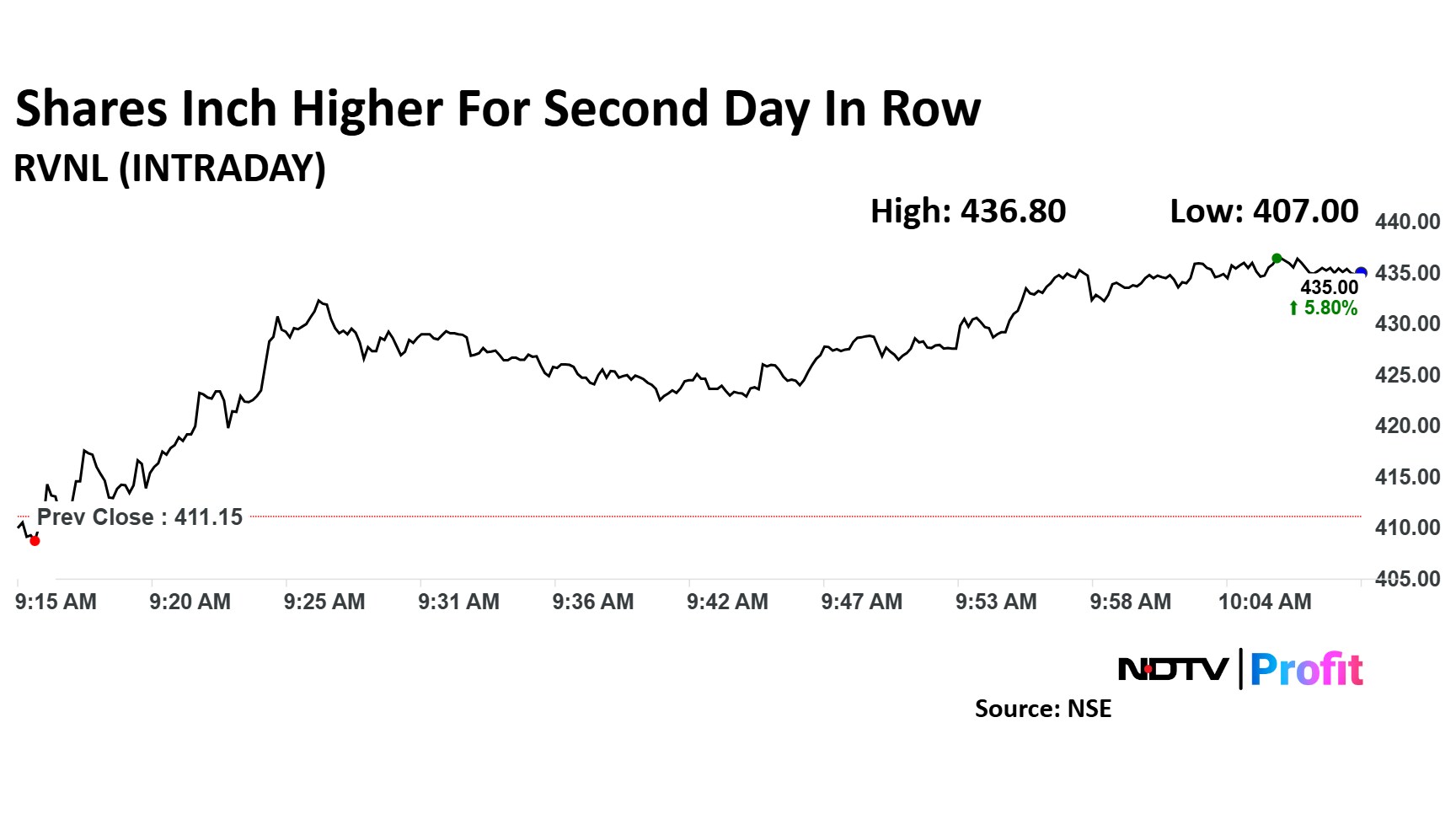 Share price of Rail Vikas Nigam Ltd. continued their upward momentum on Friday, rising over 6% in the second consecutive day of gains fuelled by major order wins from Bharat Sanchar Nigam Ltd.