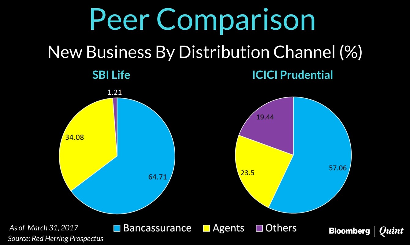 Bancassurance, or partnership with banks, contributed 64.7 percent of the insurer's new business premium from individual products in the year to March. Besides SBI, the insurer has distribution pacts with Punjab & Sind Bank and South Indian Bank. It sells its products through 26,367 branches.