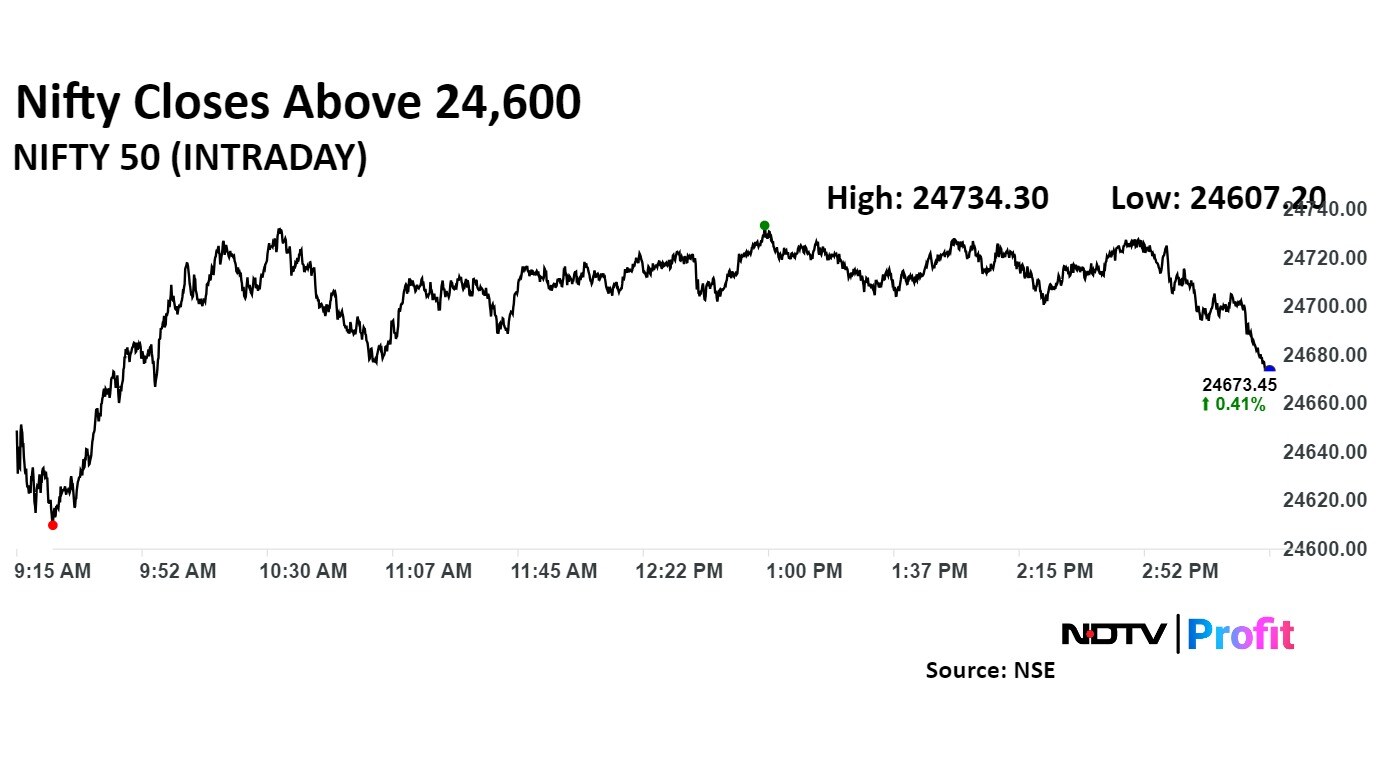 The Nifty ended 126.20 points or 0.51% higher at 24,698.85 and the Sensex was 378.18 points or 0.47% up at 80,802.86. During the day, the Nifty and the Sensex rose as much as 0.6% to 24,734.30 and 80,942.96 respectively.