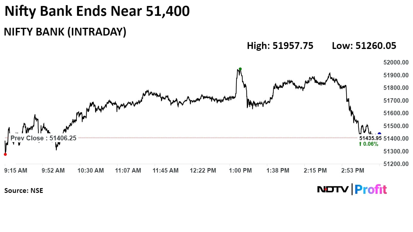 Shares of Tata Motors Ltd., HDFC Bank Ltd., NTPC Ltd., Power Grid Corp. Ltd., and Titan Co. contributed to the gains in the Nifty 50.
