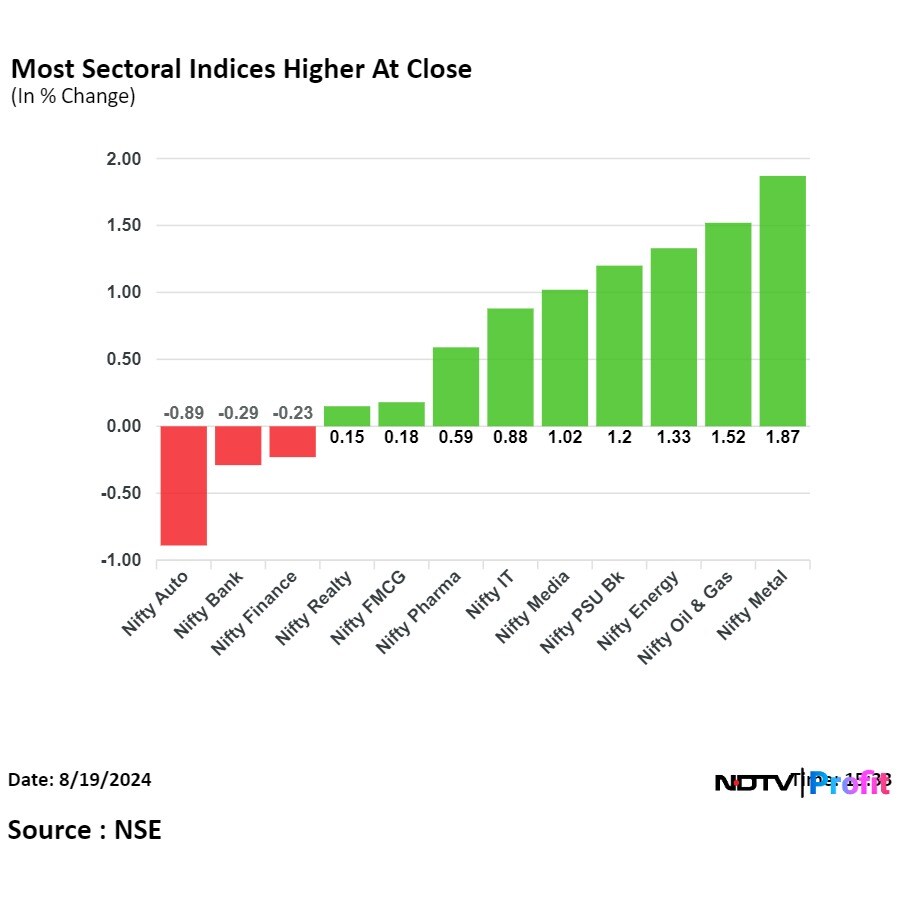 Three out of 20 sectoral indices on the BSE ended lower and 17 advanced. BSE Auto fell the most and BSE Metal was the top gainer.