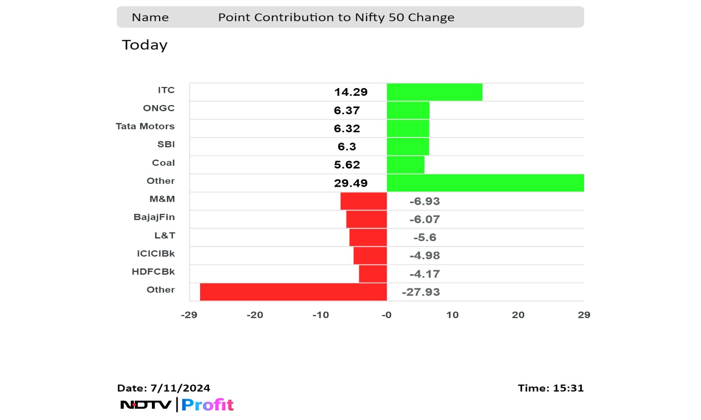 ITC, ONGC, Tata Motors Ltd., State Bank of India, and Coal India Ltd. led the gains.