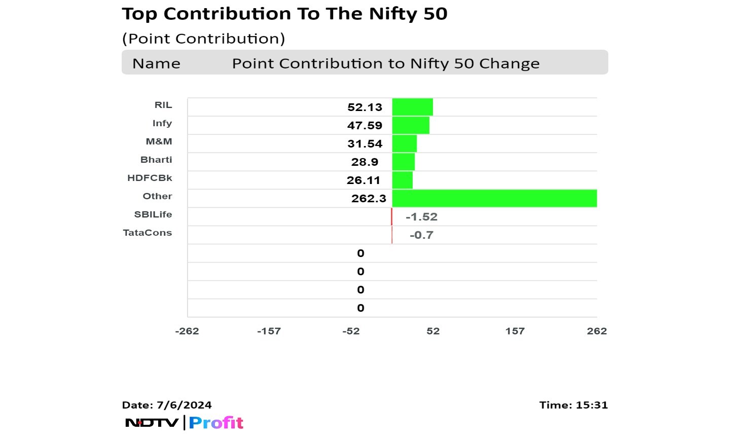 Shares of Reliance Industries Ltd., Infosys Ltd., Mahindra & Mahindra Ltd., Bharti Airtel Ltd., and HDFC Bank Ltd. contributed the most to the gains in the Nifty.