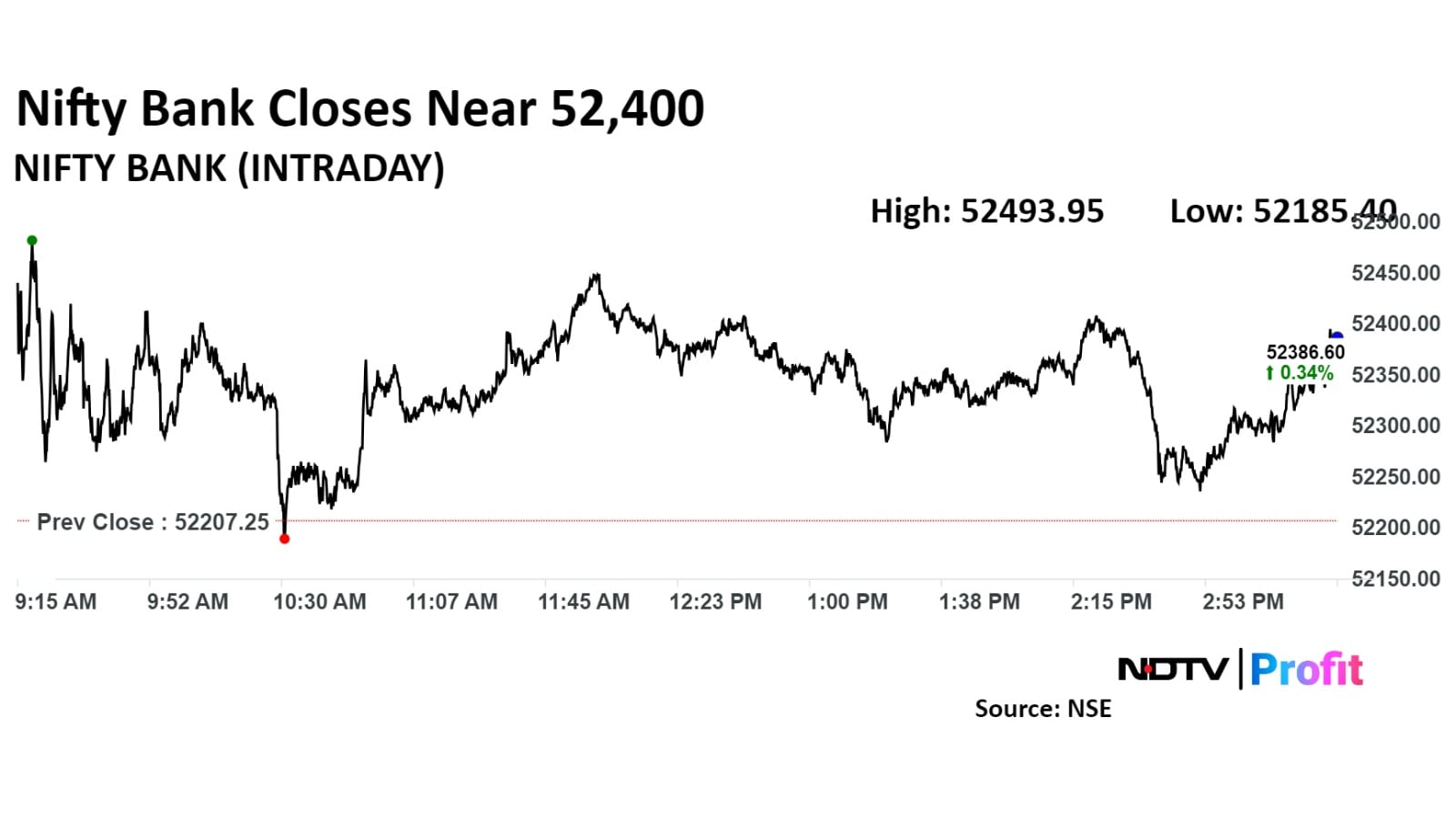 The Nifty Bank ended 0.34% higher at 52,386.60.