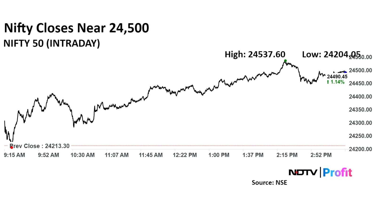The Nifty 50 ended 1.14% higher at 24,490.45.