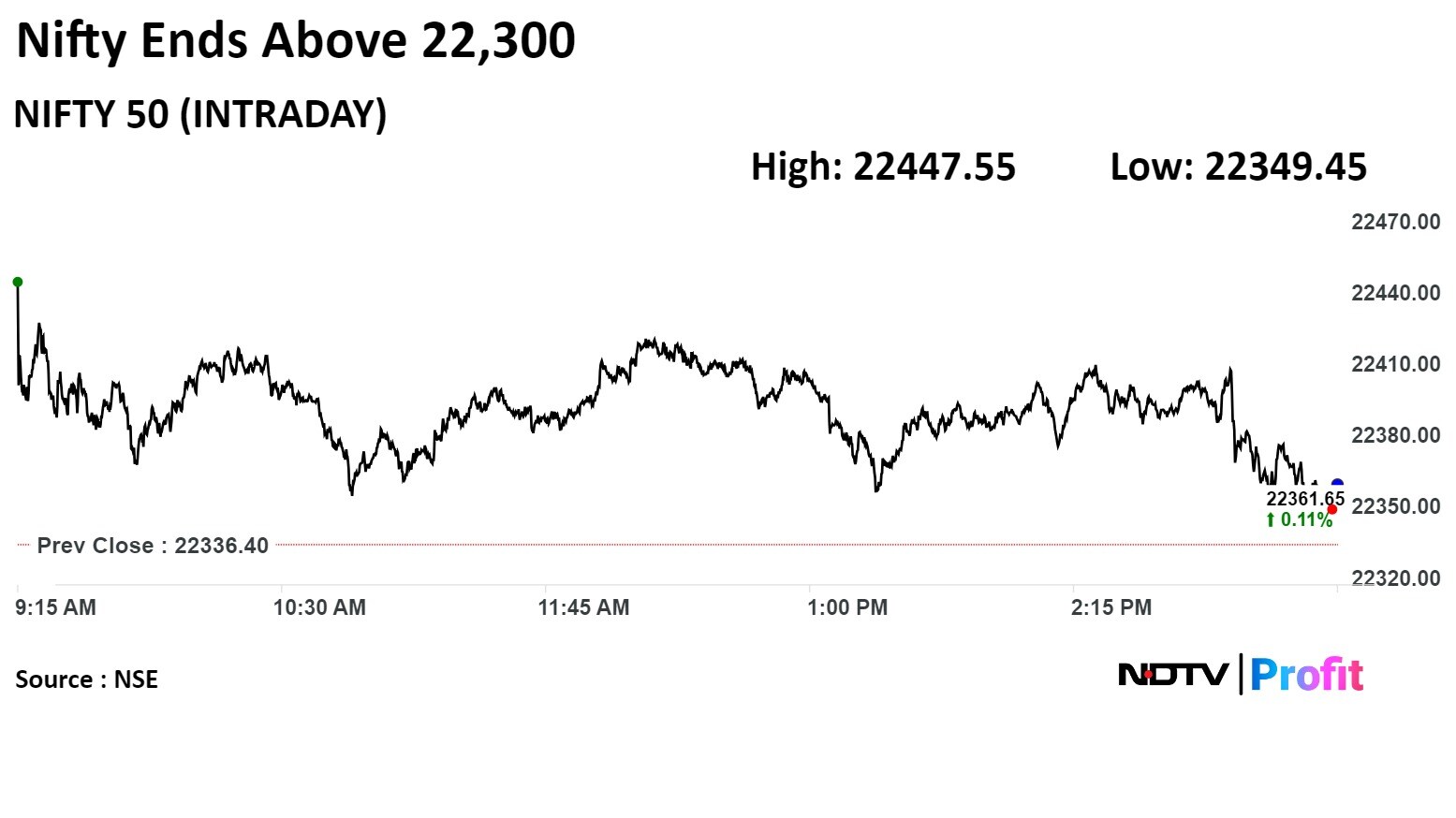 The Nifty found resistance at the bearish gap zone of 22,430–22,500, according to Aditya Gaggar, director of Progressive Shares. "Our view remains the same—need to fill the mentioned gap zone to extend its uptrend, while a level of 22,190 (50 DMA) will continue to act as support."