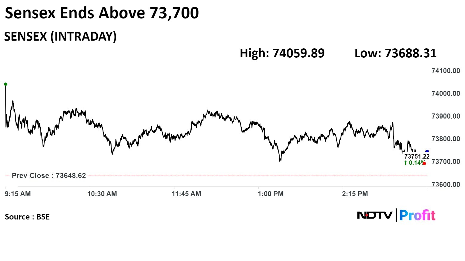 The benchmark equity indices ended a little higher on Tuesday as shares of Bharti Airtel Ltd. led the gains, but the upside was limited due to losses in Reliance Industries Ltd. The NSE Nifty 50 closed 31.60 points or 0.14%, up at 22,368.00, while the S&P BSE Sensex was 89.83 points or 0.12%, higher at 73,738.45.