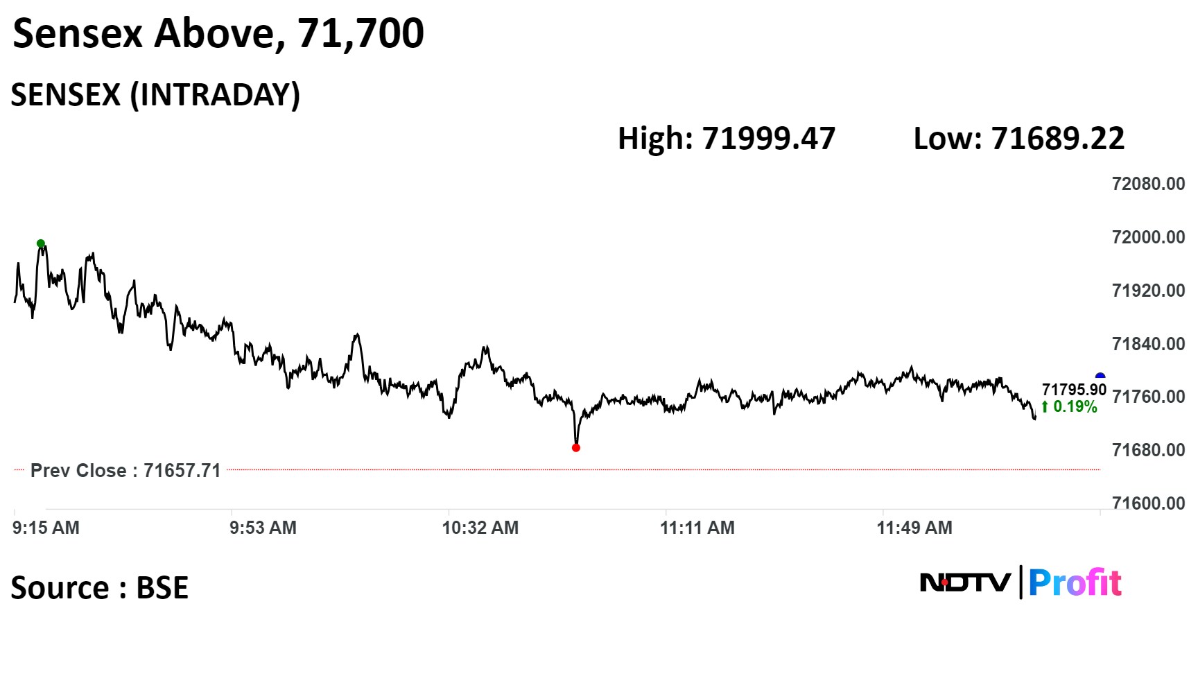 The Sensex hit an intraday high of 71,999.47 while the Nifty 50 touched 21,726.50 so far on Thursday.