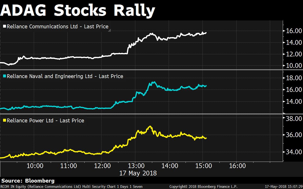Shares of the Mumbai-based power producer rose as much as 8.4 percent, the most in over a month, to Rs 36.10.